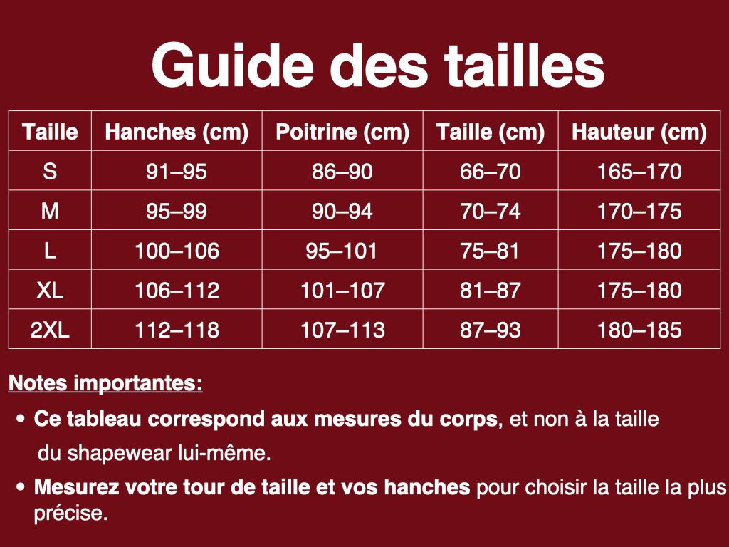 Pour un effet sculptant optimal : Prenez votre taille habituelle, la matière s'adaptera parfaitement à votre morphologie.